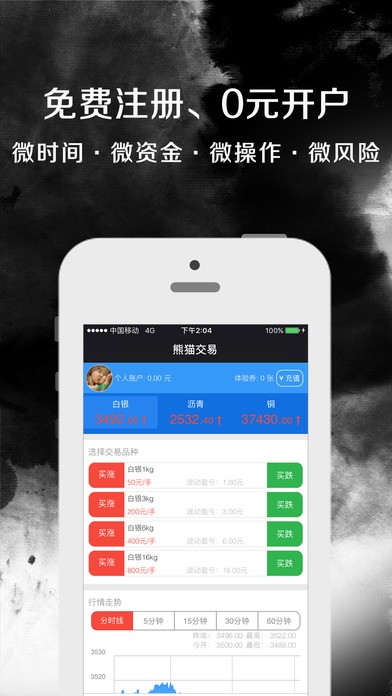 1、微操作。买涨买跌两步到位,便捷的操作系统,简洁的操作界面,金融理财不再人人仰望,没有做过理财投资的也可以立马上手。