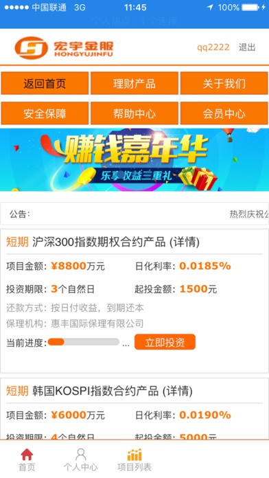 宏宇金服app是一款提供投资理财服务的手机应用。宏宇金服app主要为中小企业提供融资服务,为投资者提供优质的理财项目。