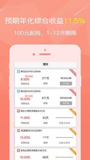 摇财树app是一款互联网金融理财服务手机应用,摇财树app为投资者打造安全、透明、诚信、高效、稳定的P2F投融资服务平台。