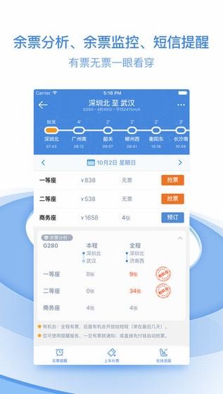行程服务 - 出发提醒,退改签提醒,到站提醒,关注行程,不误车不误站。