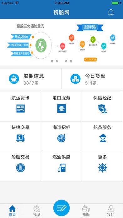 携船网是“互联网+海运”电商平台,平台为用户提供免费发布船期,货盘信息以及免费查看联系方式,在线运输交易,在线投保,燃油供应,港口服务,船舶买卖,船员招聘等一系列海运产业链服务。用户可以直接通过手机APP进行各项交易活动,操作更加便捷,交易更加安全。在线运输交易已经帮助大量用户解决交易过程中运费结算不及时,合同执行不规范,运价不透明等问题,最大化保障交易双方的利益。