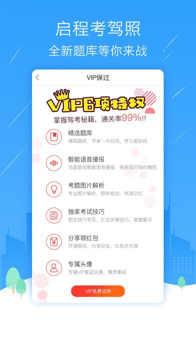 启程考驾照app是一款学车类手机应用。启程考驾照app为学员提供了最新的10月新规题,最新大纲章节,官方出题,还有Vip专享题库为您提供。启程考驾照app是您学车的好帮手。
