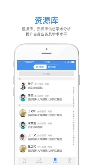 【我的患者】接受过的患者会以各种服务状态保存在您的“我的患者”列表里,后期可对患者病情进行跟踪和学术分析;