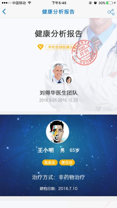 健康咨询:拥有最专业、全面医疗健康数据库,了解专家对健康数据的个性化分析诊断和治疗建议。
