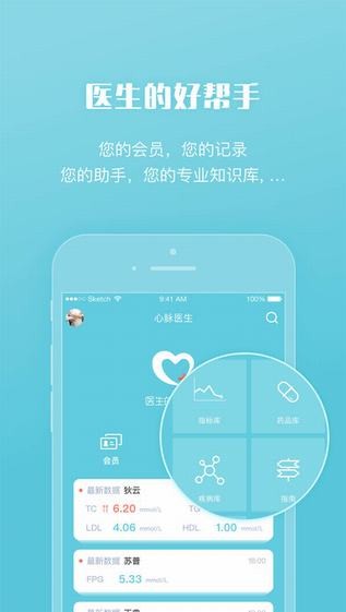 「心脉医生」是医生的好帮手,为医生构建专属工作室。「心脉医生」一方面为会员自动构建和维护详细的健康档案,另一方面提供一系列功能帮助医生管理好会员的健康,包括具有良好体验的在线咨询工具、自动风险提醒、指标解读、消息提醒、还有丰富的医学知识库,有常用疾病库、药品、指标、指南、临床路径等等,方便医生随时查询。