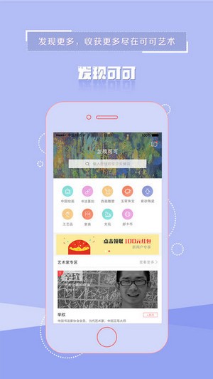 可可艺术app在这里艺术品实现自由的流通。在这里你的各种求购愿望,让大众帮您实现。丰富多彩的艺术活动等你参加,形式各样的同城活动,让你可以和艺术家面对面交流,和 艺术爱好者结伴同行,来感受不一样的艺术氛围。