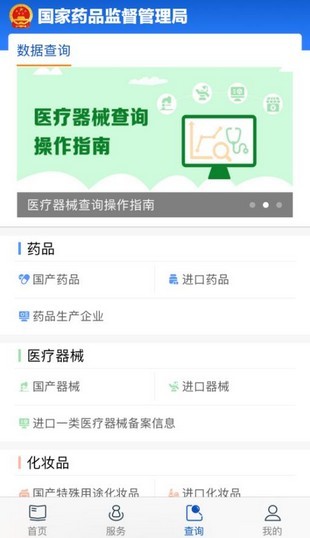 新版“中国药监”开设了数据查询栏目,向用户提供数据服务。数据查询栏目开放了国家药监局对外公布的药品、医疗器械、化妆品相关的产品、企业及许可进度信息,进一步优化数据查询方式和体验,提供了模糊查询和单一字段查询两种查询方式,为用户提供专业、权威的数据参考。为把监管数据揣进用户的口袋,数据查询栏目将不断扩充移动端的数据公开范围,为公众、企业、监管人员提供更加便捷的服务。