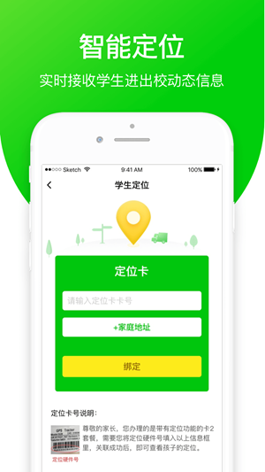 【在哪儿】学生绑定校车进行定位,实时查看学生上学、放学路程中所在位置,让家长更加放心学生的安全。