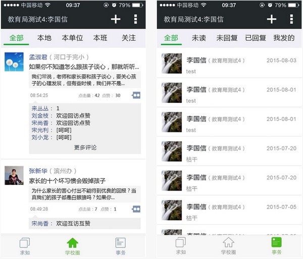 2、单位展示:为每个教育局、学校、班级建立了单位空间,用户可以通过图片、文字等形式,向整个教育系统展现单位的风貌、动态、职责、活动等信息。