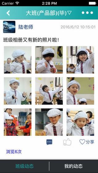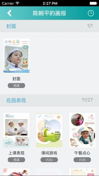 6、成长画报记录小孩的一些成长情况,家长通过选择或上传孩子们的多张照片,系统会自动生成一张画报的形式供浏览。