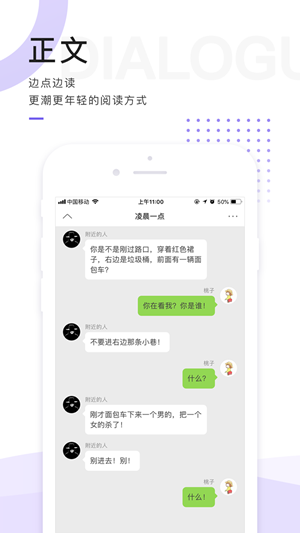 对话聊天:像看微信聊天记录一样,读小说,给你身临其境的体验。