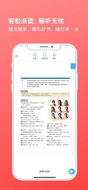 即点即读,连读连播,手机秒变点读机,精彩好书,随时来一点。