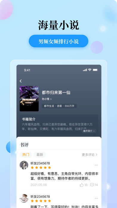 花生小说是一款追书看小说大全的电子书阅读软件,海量精品小说免费读,网罗时下热门分类,都市、校园、言情、玄幻、修仙、武侠、灵异、悬疑等各类题材应有尽有,全网火热、高质量小说,任意畅读,实实在在的小说阅读器。