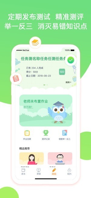 【测验】:慧话宝定期发布测验,精准测评,学生在手机上做作业,回顾作业,错题举一反三,消灭易错知识点;