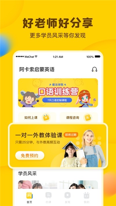 阿卡索启蒙英语ios版是一款专业英语学习服务平台,帮助用户选择各种英语资源学习,实时更新学习资源,包含了ABC、学科单词、口语练习和睡前故事等模块,更有严选外教,一对一教学,还原真实的英文课堂。