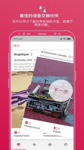 1、设置了快速配对模式。用户只要根据步骤操作,就能进行与其他国家的用户进行语言学习,实现互换,简单便捷;