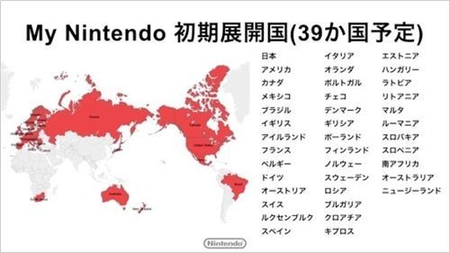 My Nintendo这个服务初期将在39个国家展开,暂不包括中国,会分阶段的扩大服务范围。