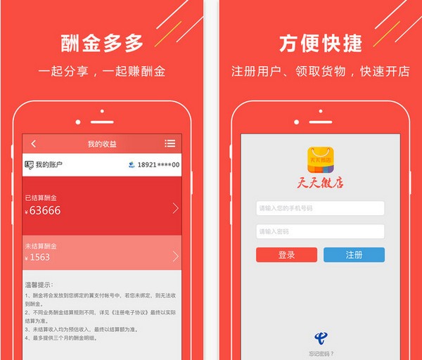 天天微店app这是来自中国电信打造的一个手机微店,天天微店app电信为广大微商们打造的一个手机微店,有了这个天天微店app,网友们就可以在上满开设属于自己的手机微店,有了天天微店app就可以快速开店并销售电信特色商品。