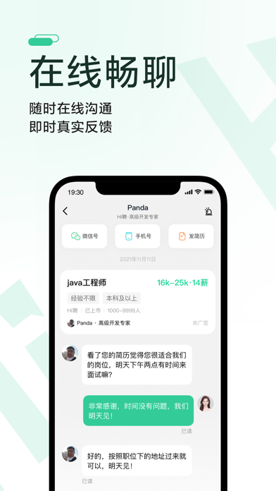 3、告别传统求职方式,直接和企业的负责人进行聊天对话,成功率更加高。