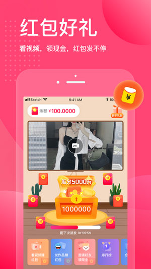 C嗨视频app是一个简单粗暴的赚钱应用,看视频就能得红包,新人用户完成新手任务,C嗨红包版可以直接获得现金红包奖励,然后提现到微信,之后还可以做推广邀请新人加入。
