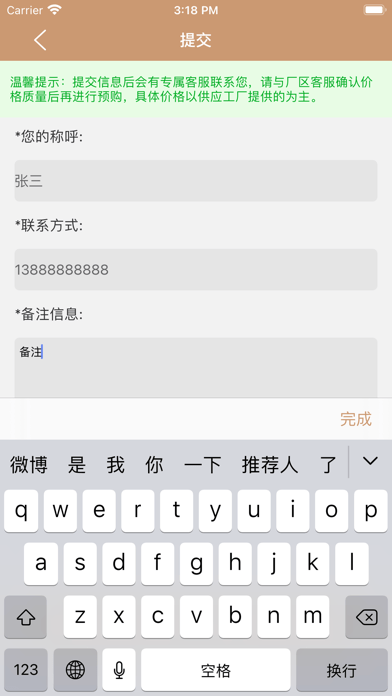 3、只需要提交预购信息,我们会有专门的工作人员打电话给您细聊具体情况及价格信息,了解产品质量,小批量验质量。