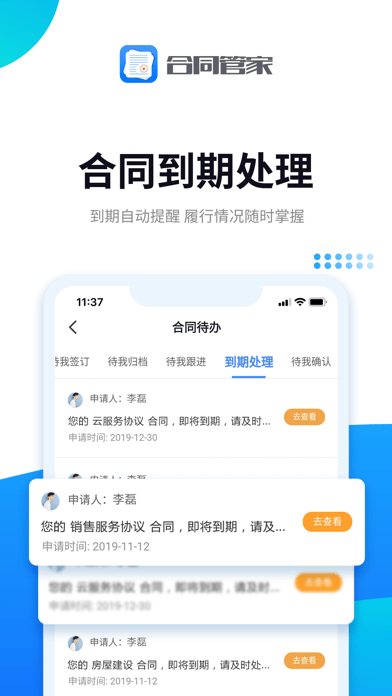 合同管家是一款帮助企业标准化管理合同的高效办公软件,是专业合同管理系统,协同办公,助力企业管理更高效,合同模板管理,统一管理防篡改,降低法律风险,合同到期自动提醒,履行情况随时掌握,账款周期计划,待办通知提醒,云端存储安全,精确查找合同,在线归档预览。