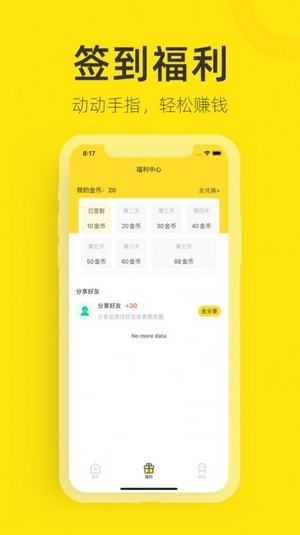 3.每天只需走路就能轻松赚取收益,每天签到还有金币奖励,金币可以用来兑换奖励