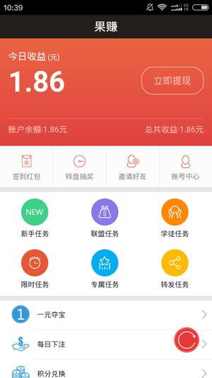 任务赚钱:限时推荐、联盟任务、有偿转发、每日签到等;