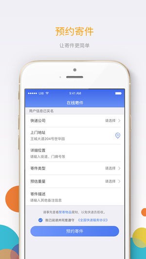 1. 在线寄件:用户可以通过手机查询附近网点、快递员,真正实现不出门就能下单寄件的互联网时代。