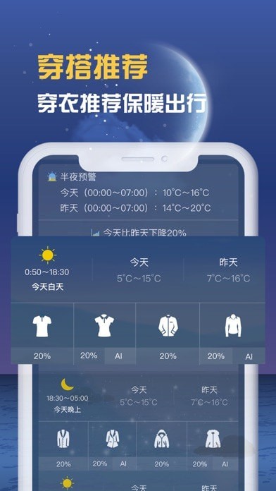 穿搭天气是一款性能安全、功能强大的天气温度穿搭软件,通过实时天气温度测量,进行穿衣推荐,让您冷暖早知道,帮助你早晚保暖出行,界面简洁,操作简单,同时你还可以进行穿搭的记录,这样下次出行时就不用担心不知道该穿什么了。