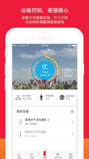 夏粉智家app是一款夏普推出的智能家电app,通过夏粉智家app用户不仅可以控制家里电器,还可以在夏粉智家app随时查看品牌头条热点资讯等等,遇到问题还可在社区论坛求助。