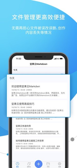 坚果云Markdown编辑器界面简洁,无内置广告,为您创建一个不受打扰的写作环境。
