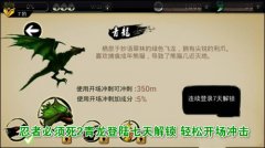 忍者必须死2青龙登陆七天解锁,轻松开场冲击。在游戏中召唤兽一共有四个,非R996玩家对如何选择召唤兽不是很清楚。其实想要选择好适合自己的召唤兽还是比较简单的,首先996玩家们